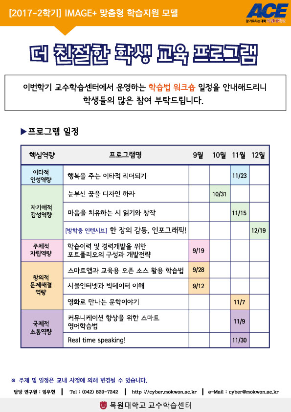 [ACE+] 2017-2학기 학습법 워크숍 일정 안내
