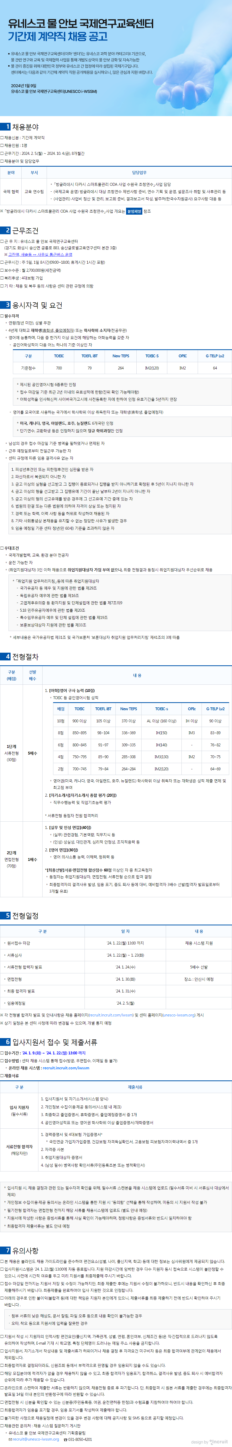다. 근무장소 : 유네스코 물안보 국제연구교육센터(경기도 화성시 송산면 공룡로 883)