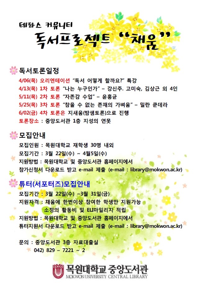 2017-1학기 독서프로젝트 채움 5기 모집 안내