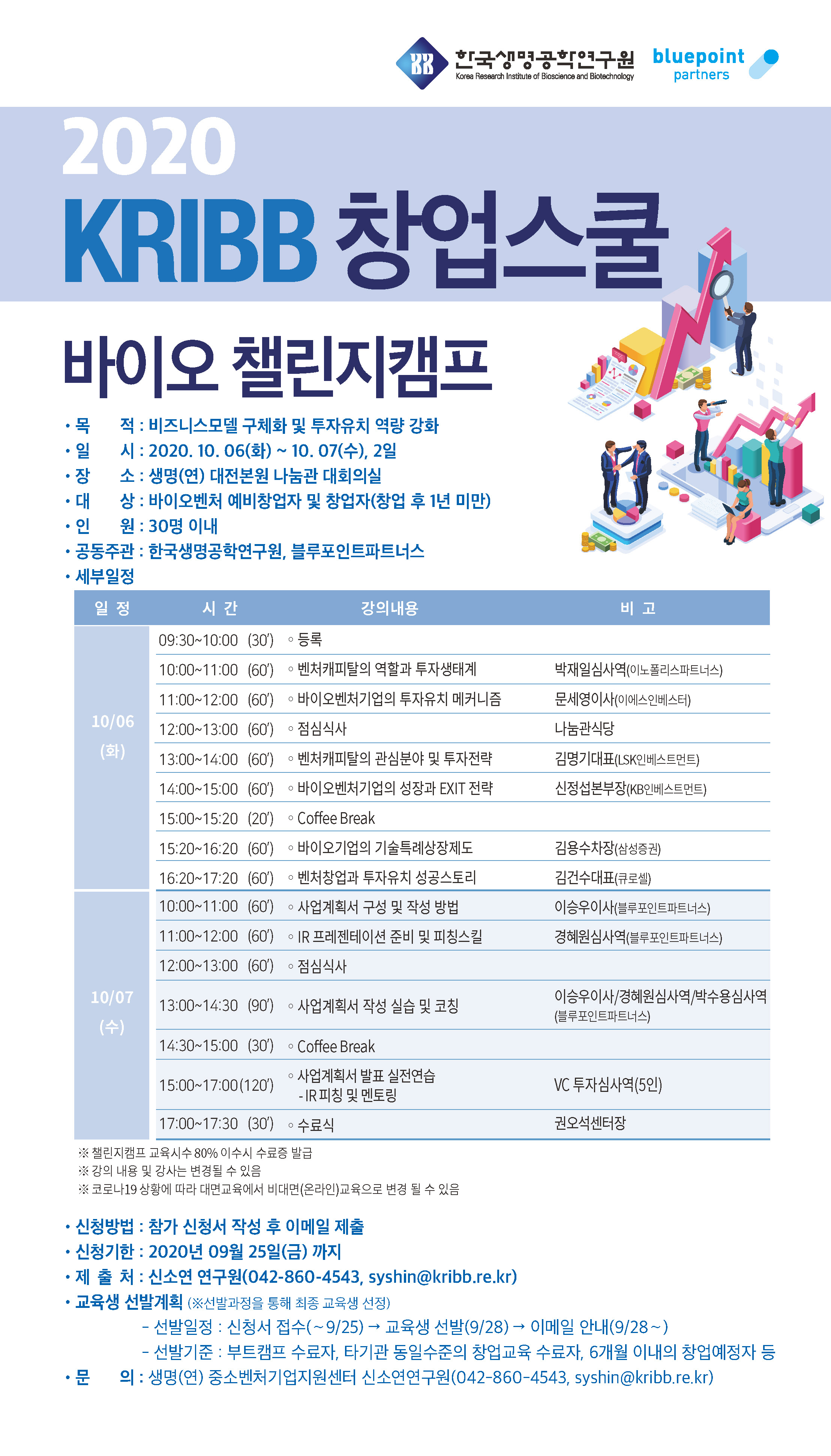 1) 일시/장소 : ’20.10.06(화)∼07(수), 2일 / 생명(연) 대전본원 나눔관 대회의실