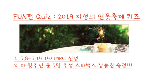 결과발표 완료... ^^ 5분 축하드립니다. 도서관 홈페이지 공지글 1614번을 확인해 주세요