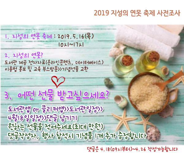 도서관]2019 지성의 연못 축제 선물 선정 사전조사