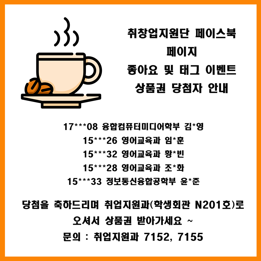 취창업지원단 페이스북 좋아요 및 태그 이벤트 상품권 당첨자 안내