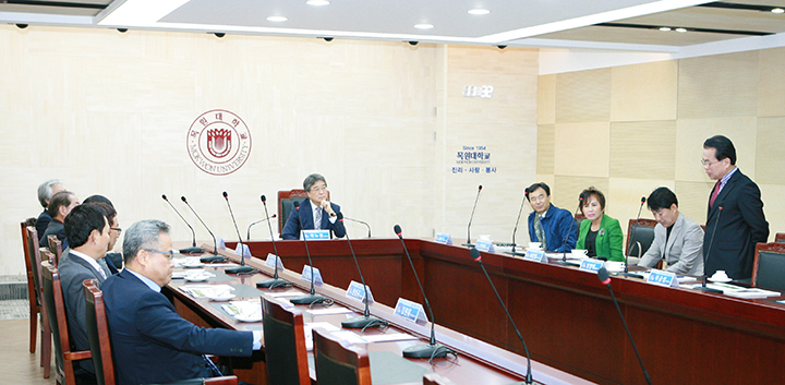 MOKWON UNIVERSITY우리 대학 박노권 총장은 18일 대학본부 도익서 홀에서 동문출신의 일선 중고등학교 교장단과 간담회를 가졌다.