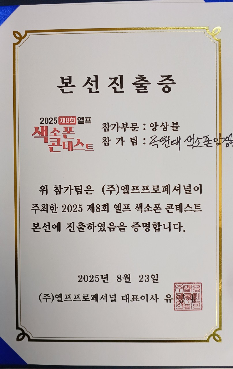 저희는 목원대 색소폰 앙상블팀으로 참가하여 오는 9월20일 당당히 3팀만 선정하는 본선(결선)에 진출하게 되었습니다.