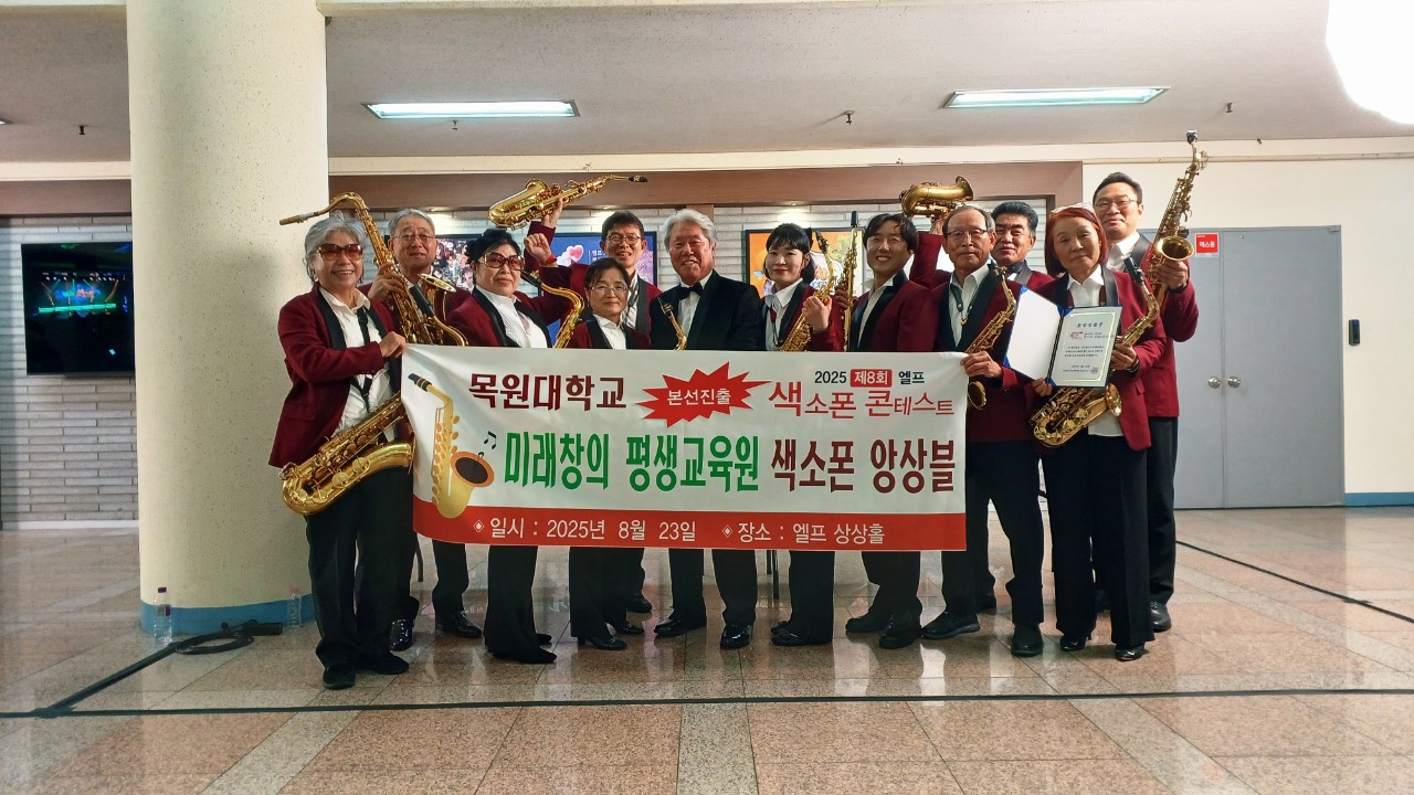 MOKWON UNIVERSITY지난 5월부터 7월까지 유투브로 전국에서 활동하고 있는 색소폰 앙상블팀 수십팀이 온라인 예선을 진행하여 드디어 8월23일 현장예선에서 앙상블팀 9팀만이 각팀의 실력을겨뤘습니다.