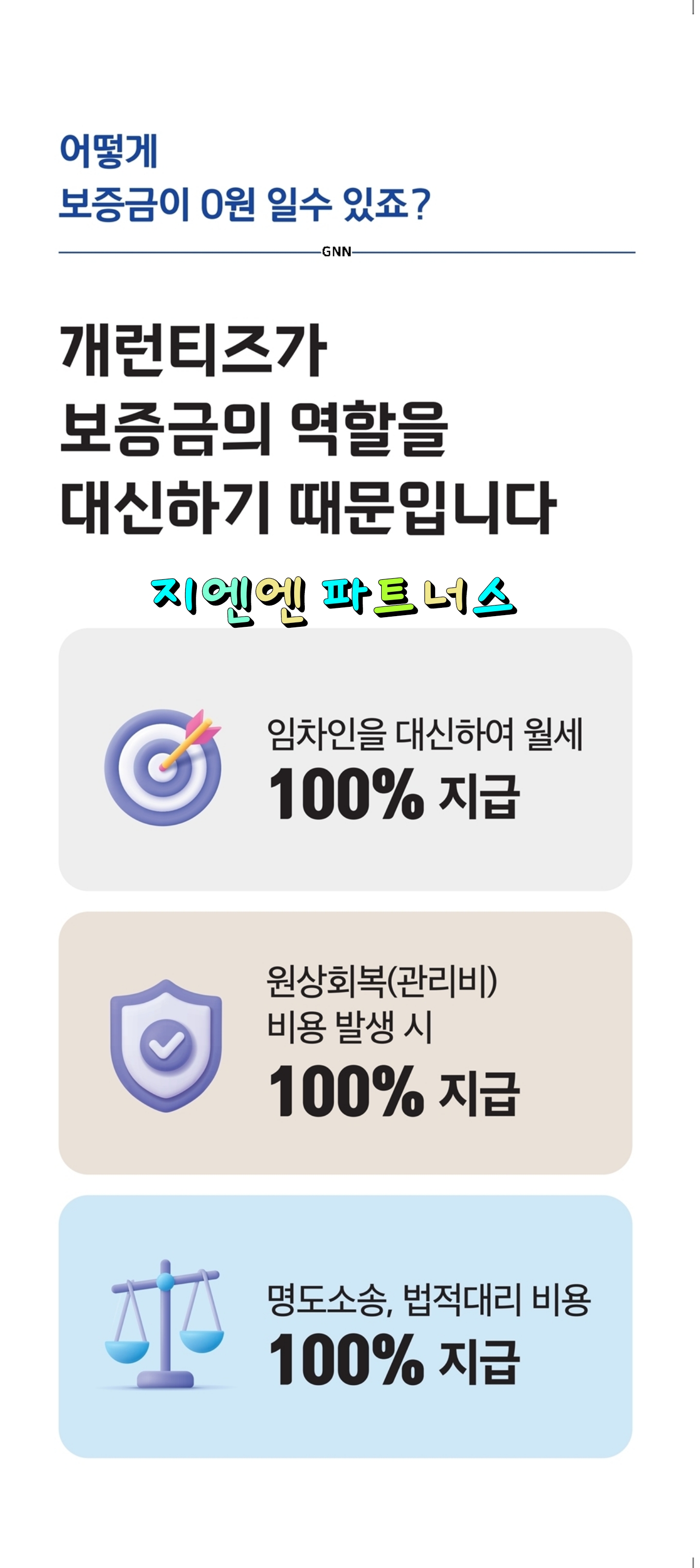 월세 미납 문제 해결: 개런티즈는 임차인의 월세 납부를 보증하므로, 임차인이 월세를 내지 않더라도 임대인은 100% 월세를 받을 수 있습니다.