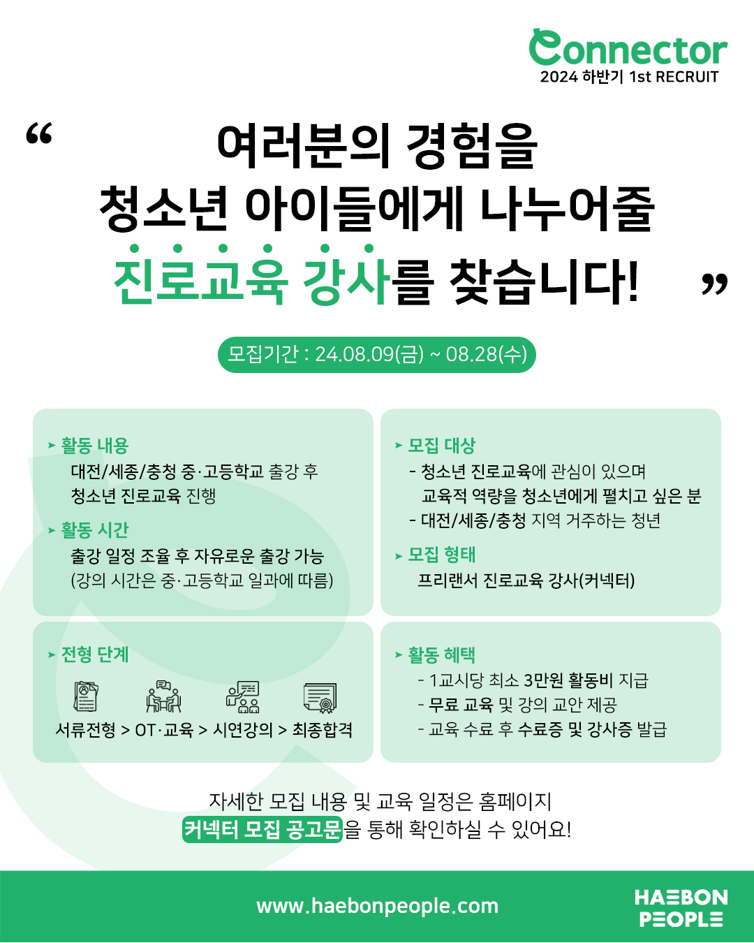 청소년 진로교육 강사(커넥터)를 모집하고 있습니다.