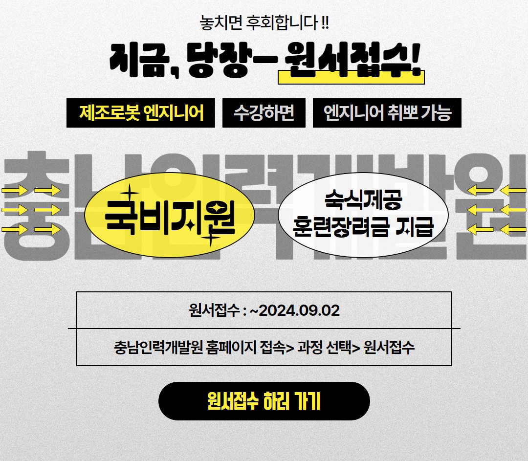 (내일배움카드 사용 및 전액 국비 지원, 훈련장려금 지급, 숙식제공)