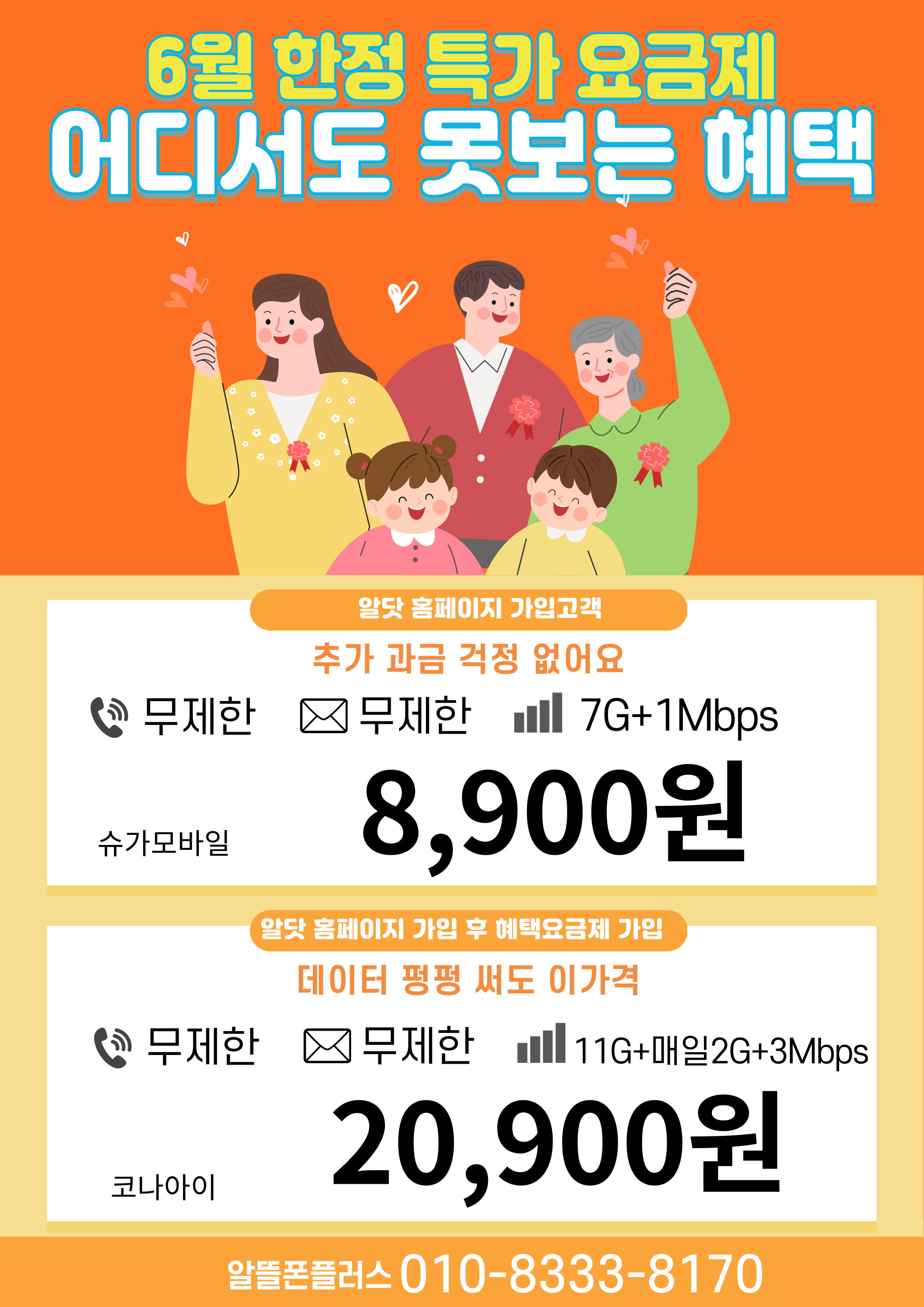 6월 한달 알뜰폰요금제 이벤트를 진행하고 있어서 목원대 학생분들이 혜택을 받을수 있도록 도움드리기위해 이렇게 글을 작성합니다.