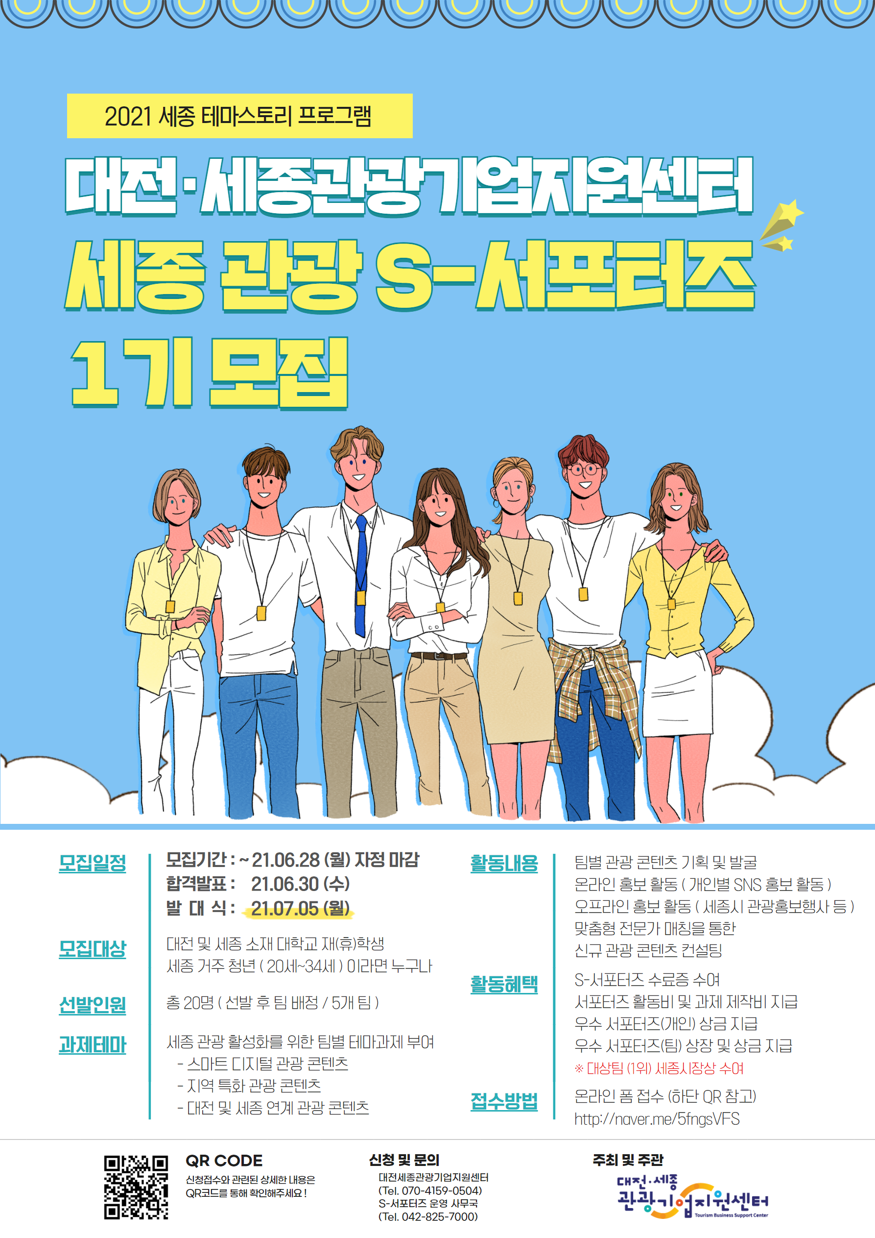 우리지역의 관광산업을 이끌어갈 '2021 세종 관광 S-서포터즈 1기'를 모집합니다.