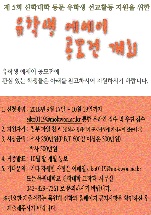 제 5회 유학생 에세이 공모전을 개최 합니다