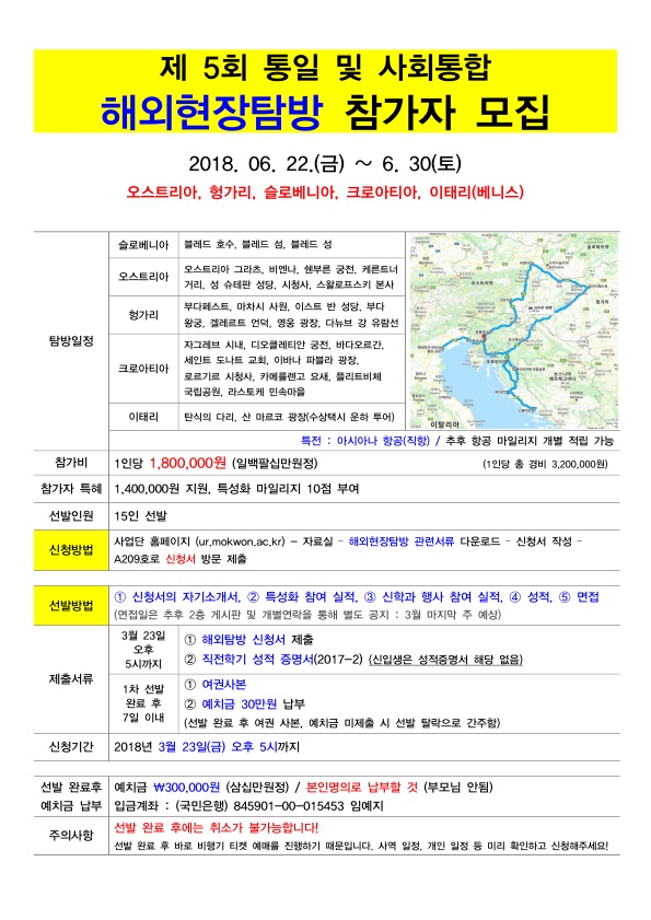 오스트리아, 헝가리, 슬로베니아, 크로아티아, 이태리(베니스)