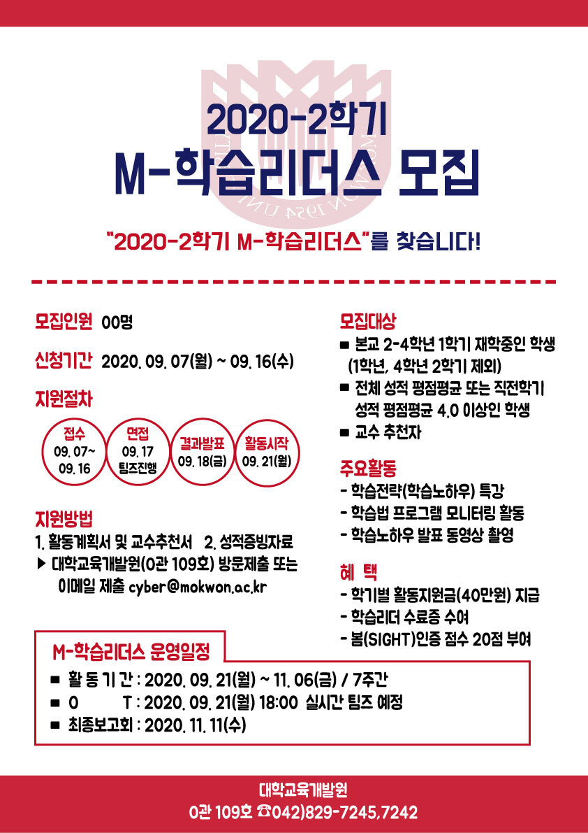 가. 사 업 명 : 2020-2학기 M-학습리더스 프로그램