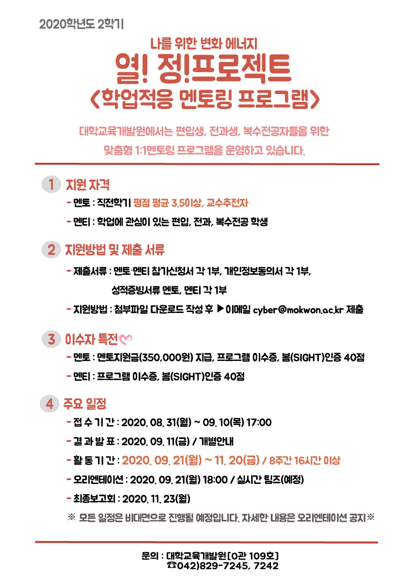 가. 사 업 명 : 2020-2학기 학업적응 1:1 멘토링 프로그램