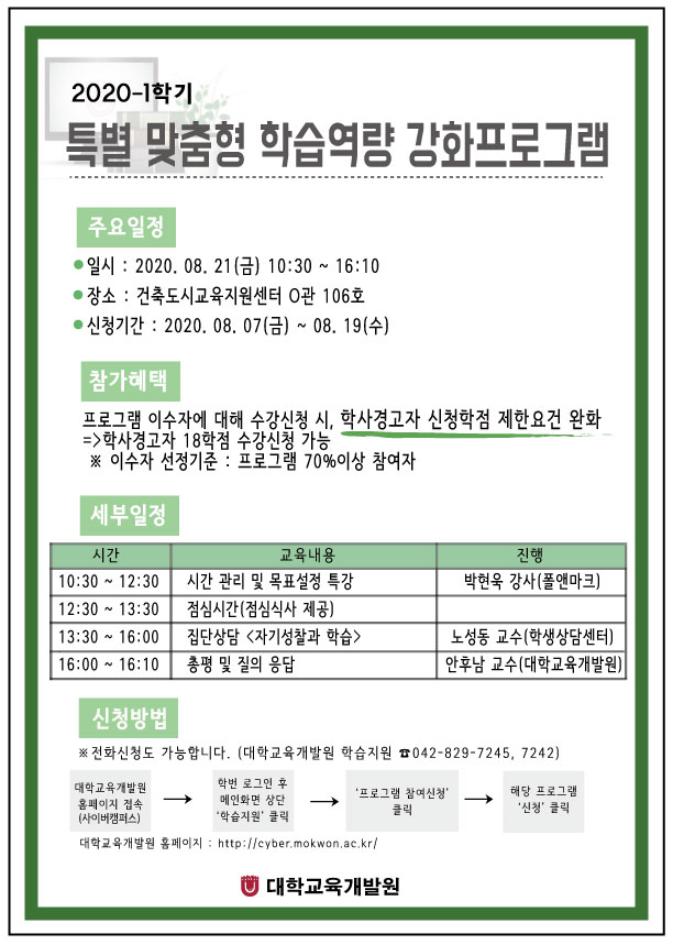 1. 사업명 : 2020-1학기 특별 맞춤형 학습역량 강화 프로그램