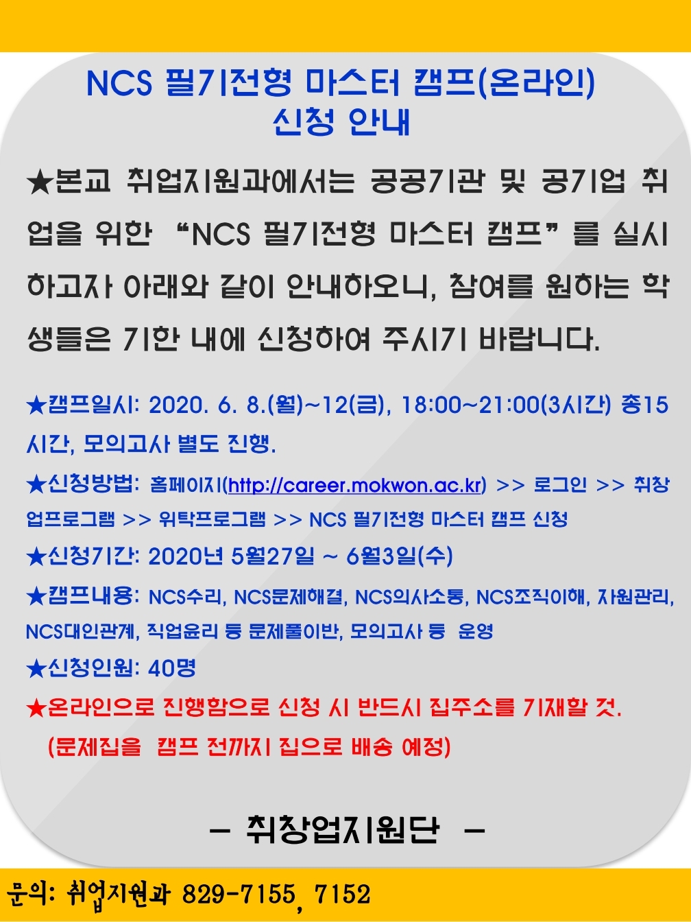자. 문의 : 취업지원과 ☎ 042.829.7152, 042.829.7155