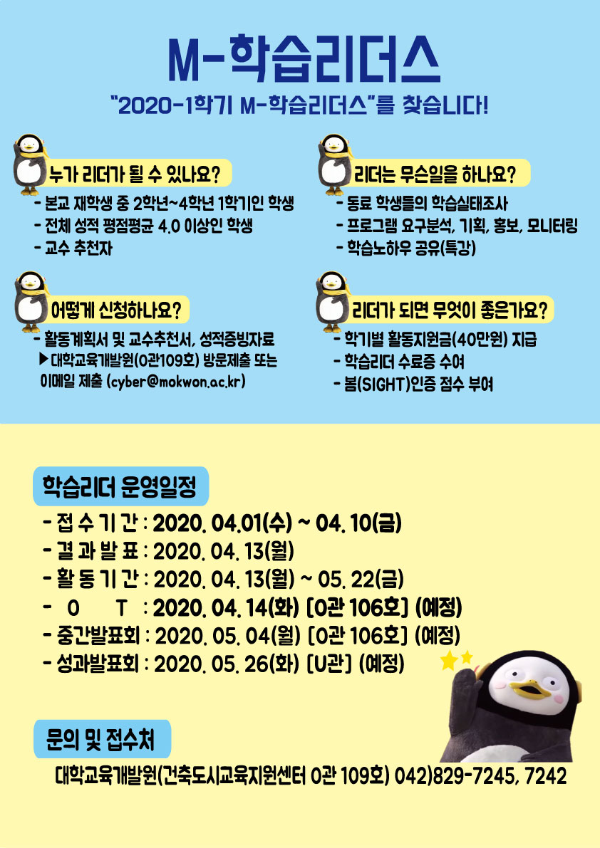 참고자료 : 1. 2020-1학기 M학습리더스 모집 공고 안내문