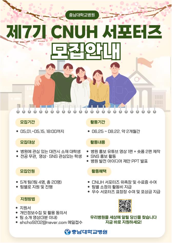 정상에서 만납시다충남대학교병원에서는 제7기 CNUH 대학생 서포터즈를 모집합니다.