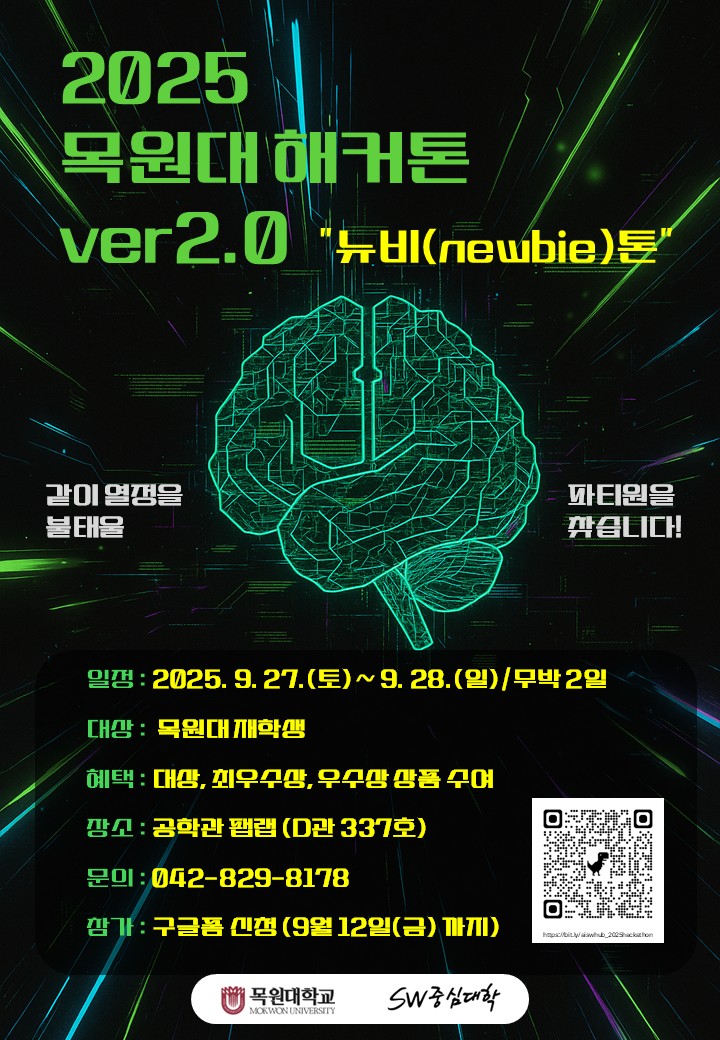 우주최강 컴퓨터공학과에서 제2회 목원대학교 컴퓨터공학과 해커톤, "목원 컴공 핵톤Ver2.0" 을 개최합니다.