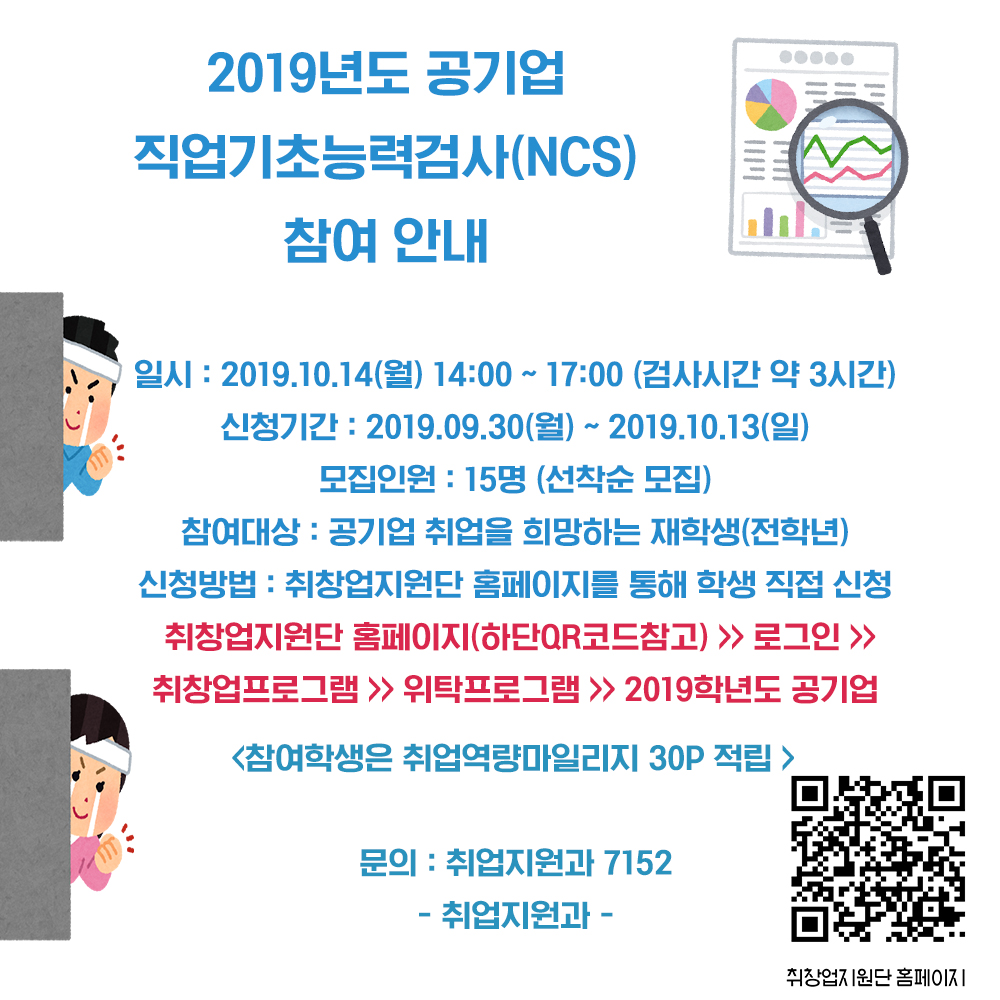 다. 공기업 직업기초능력검사(NCS) 결과를 바탕으로 취창업지원단에서 제공하는 진 로 및 취업상담을 받으실 수 있습니다.