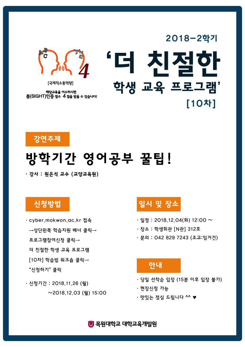 [10차] 학습법 워크숍 "방학기간 영어공부 꿀팁!" 안내