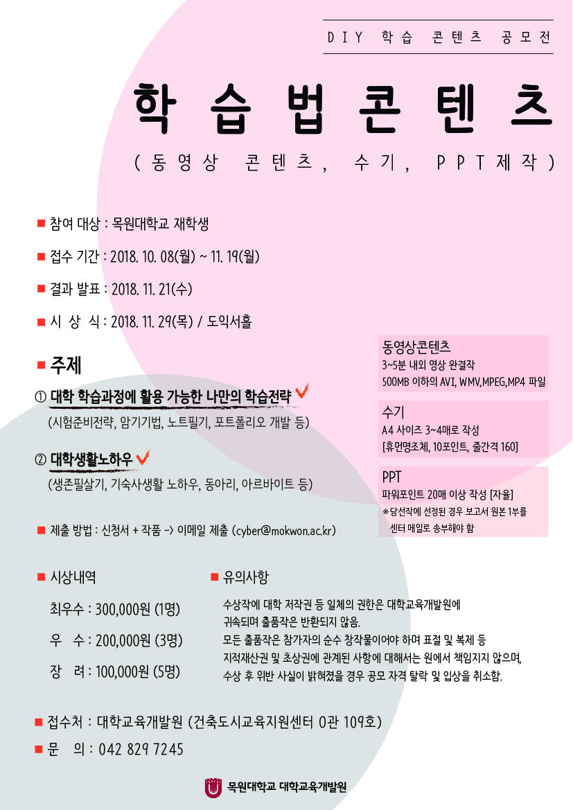 2018-2학기 "DIY 학습콘텐츠 공모전" 학습법콘텐츠 신청안내