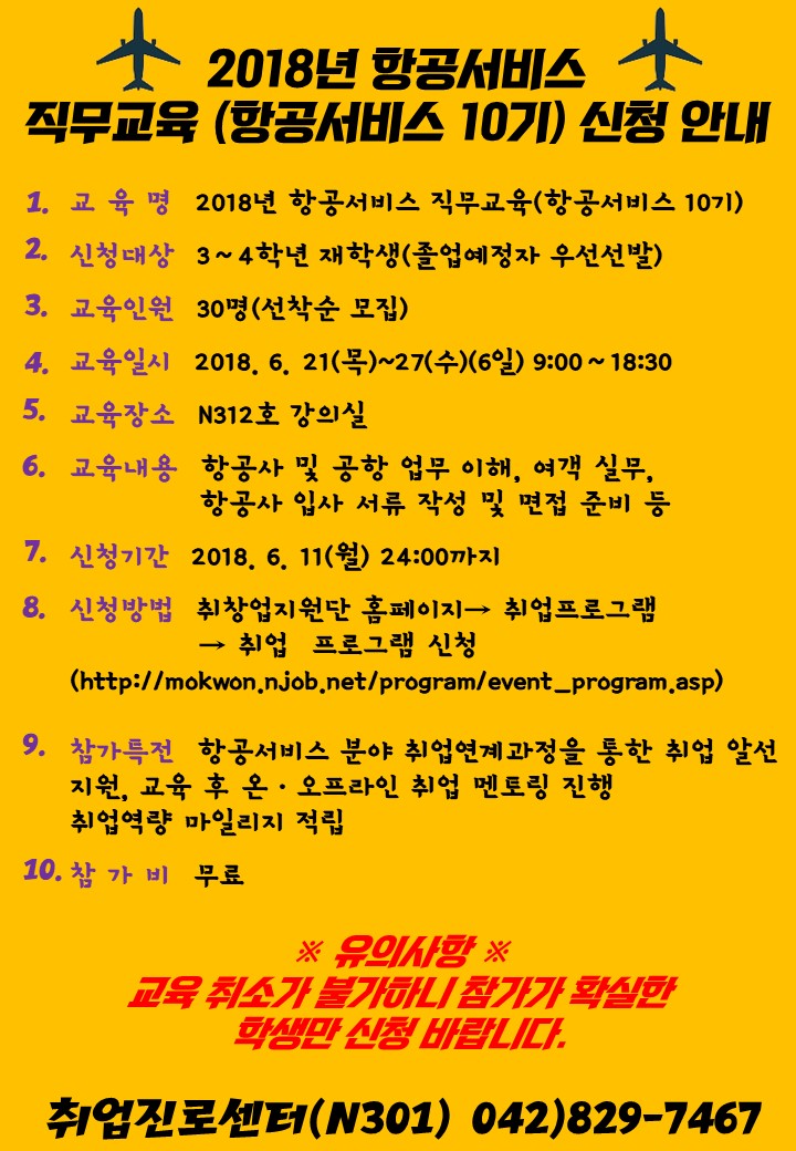 2018년 항공서비스 직무교육 신청안내