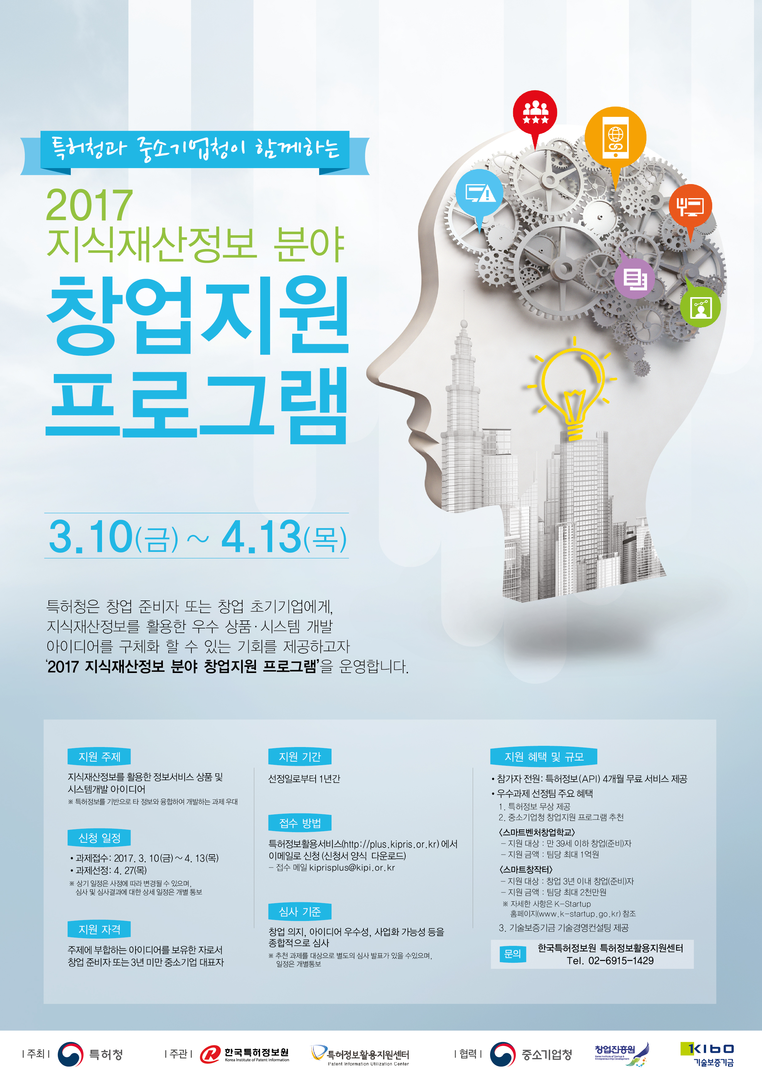MOKWON UNIVERSITY지식재산교육 선도대학 사업단에서는 특허청의 IP(지식재산)개방 데이터를 활용한 창의적 아이디어와 신규 비즈니스 모델 발굴을 통해 공공데이터 기반의 창업을 촉진하고자 개최되는 제3회 지식재산(IP) 정보 활용 아이디어 경진대회와 관련하여 참가접수방법 및 행사 진행방식등을 안내하려 아래와 같이 설명회를 진행하려고 하오니 재학생 여러분의 많은 관심과 참여 바랍니다.
