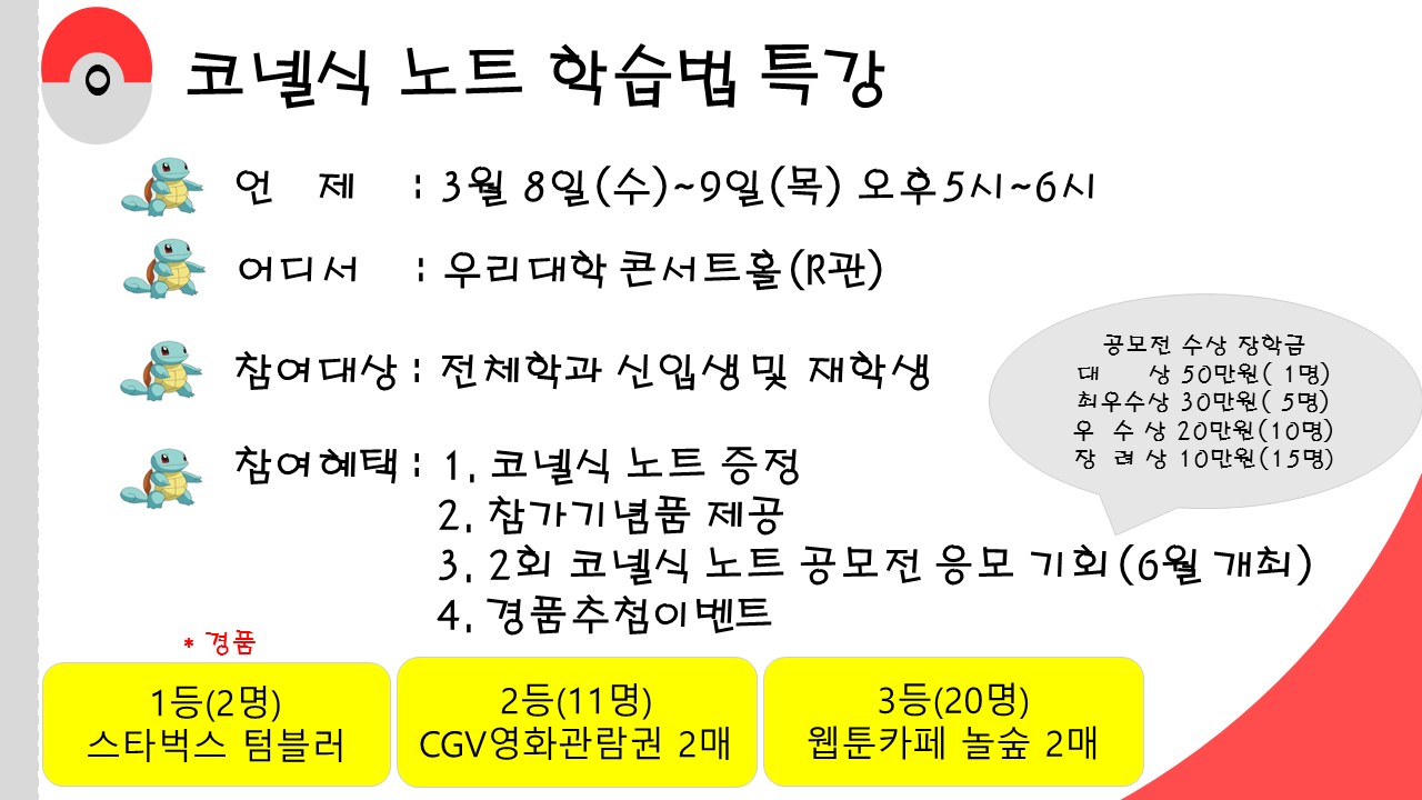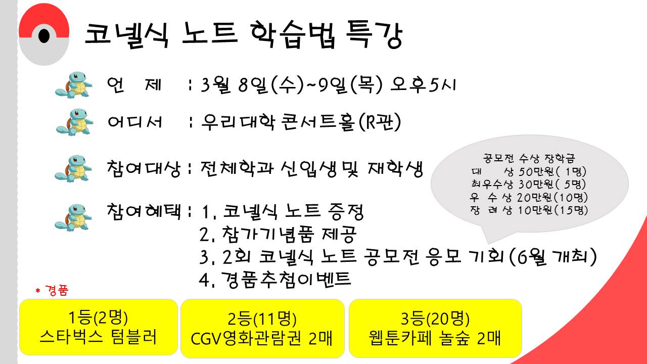 [CK-I] 2017-1 신입생 및 재학생 대상 코넬식 노트 학습법 특강 안내