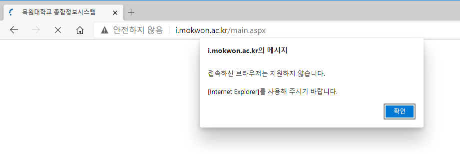 ※ 현재 우리학교 종합정보시스템은 IE환경에서만 작동하게 되어있습니다.