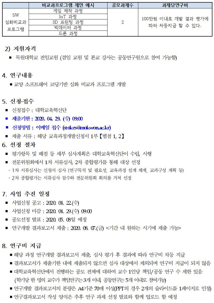 [재공모] 교양 소프트웨어 코딩기반 심화 비교과프로그램 개발 공모