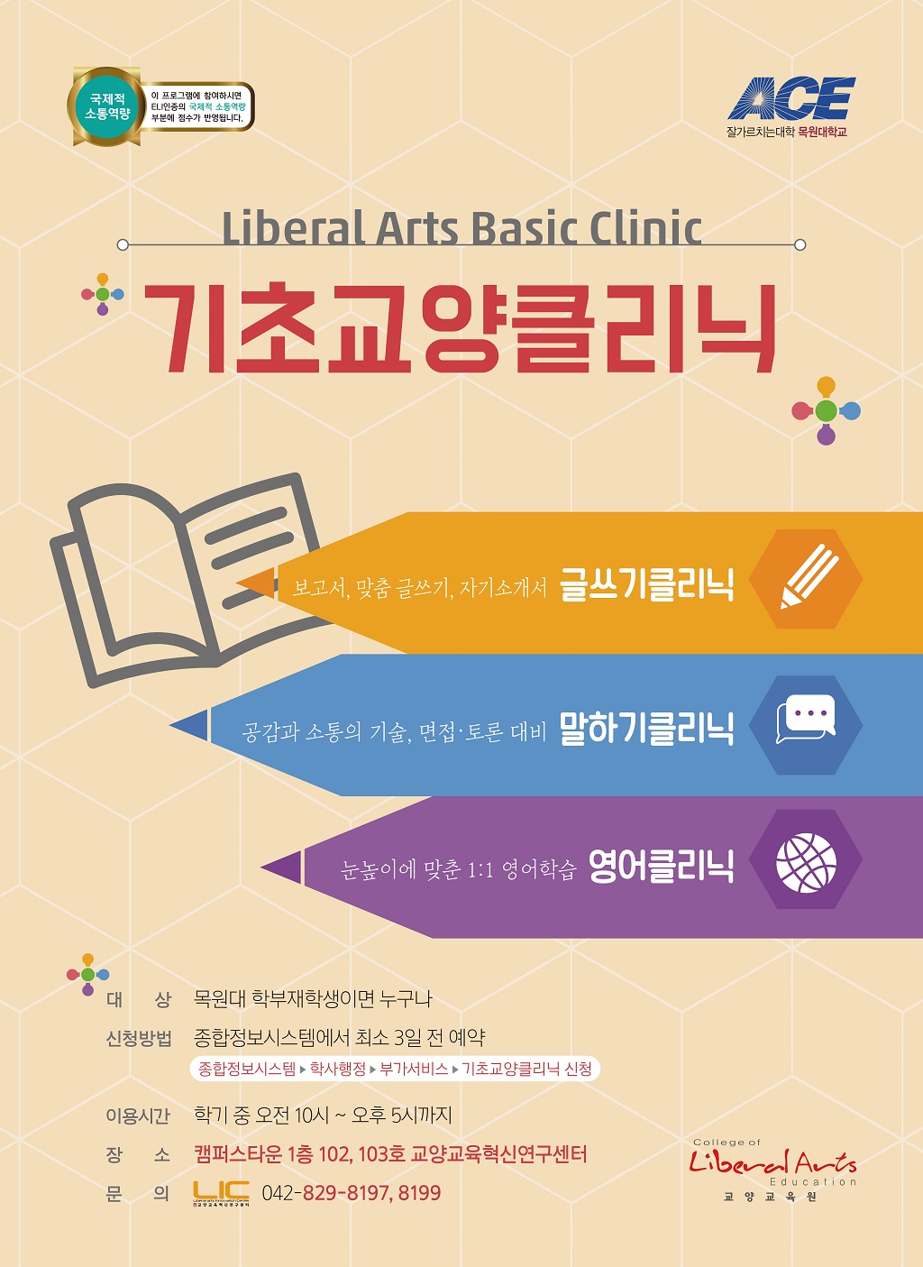 ✔종합정보시스템➜학사행정➜부가서비스➜기초교양클리닉 신청