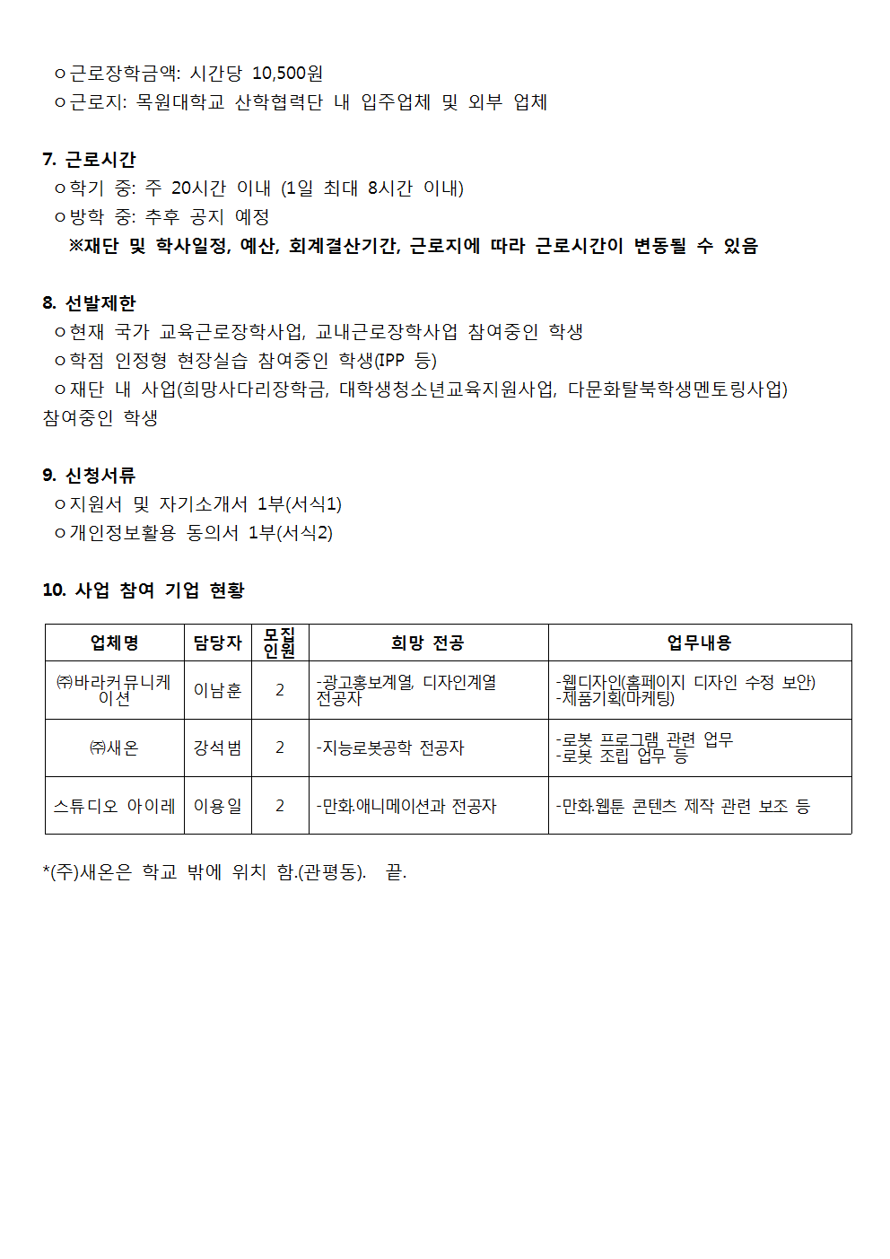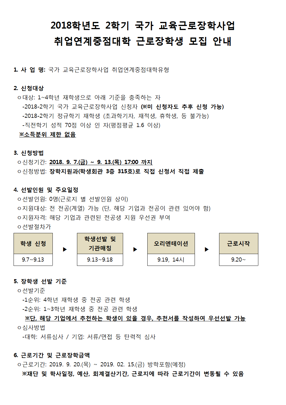 붙임 2018-2학기 국가 교육근로장학사업 취업연계 중점대학 근로장학생 모집 안내 1부. 끝.