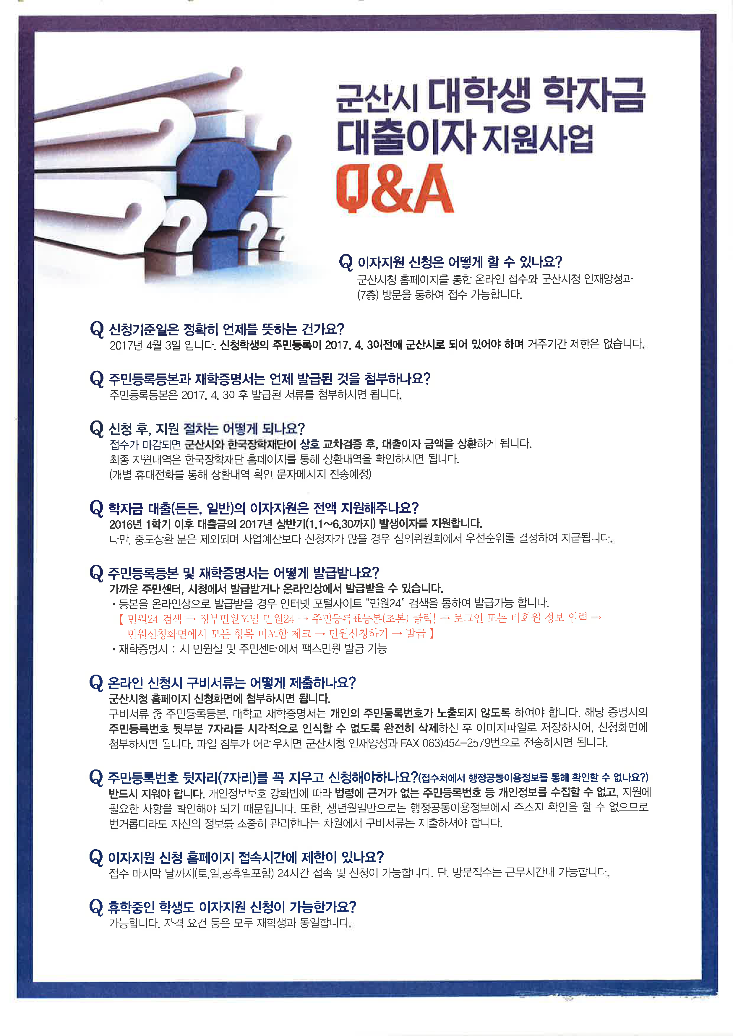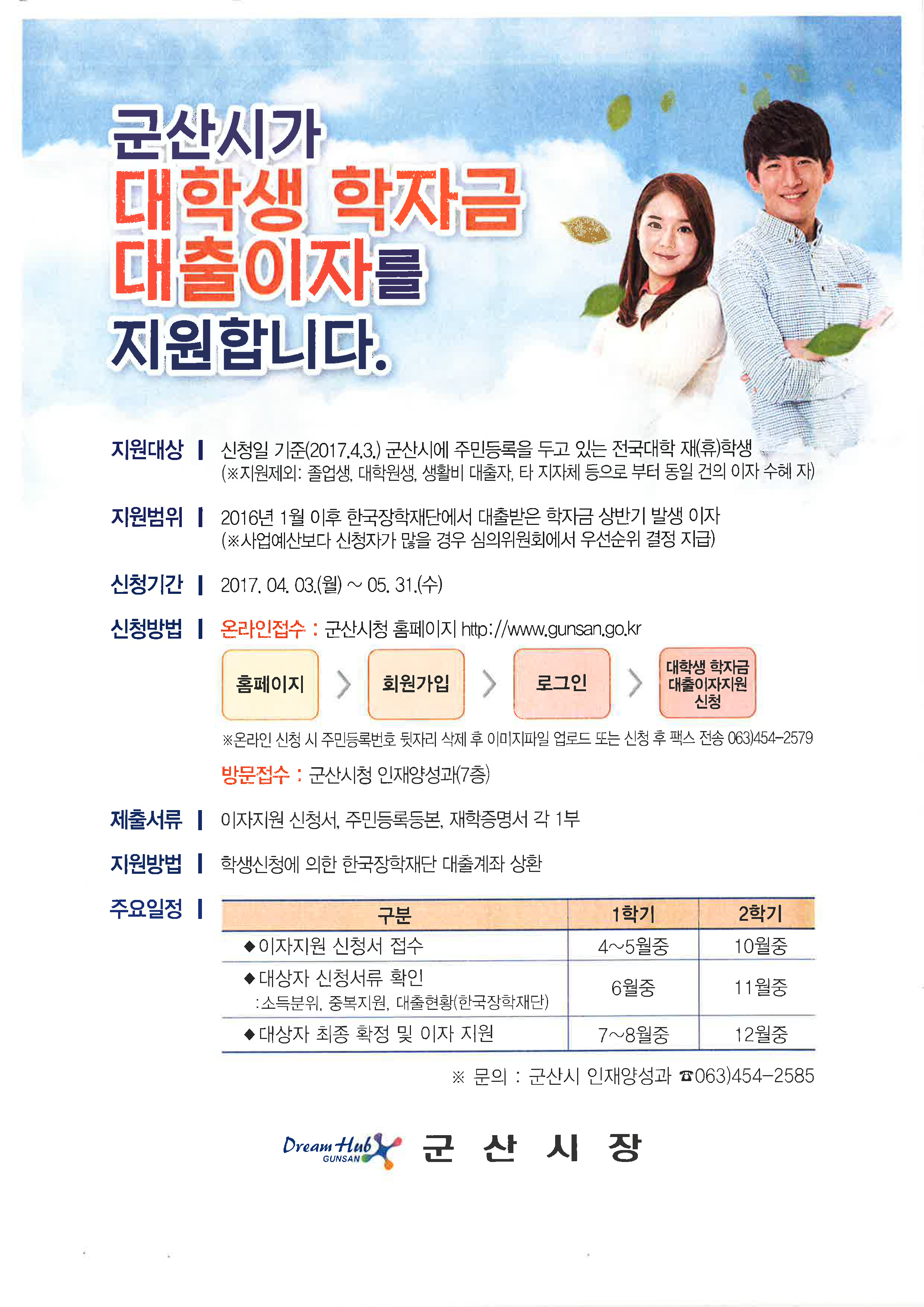 2017년 상반기 군산시 대학생 학자금 이자지원 사업 홍보 안내