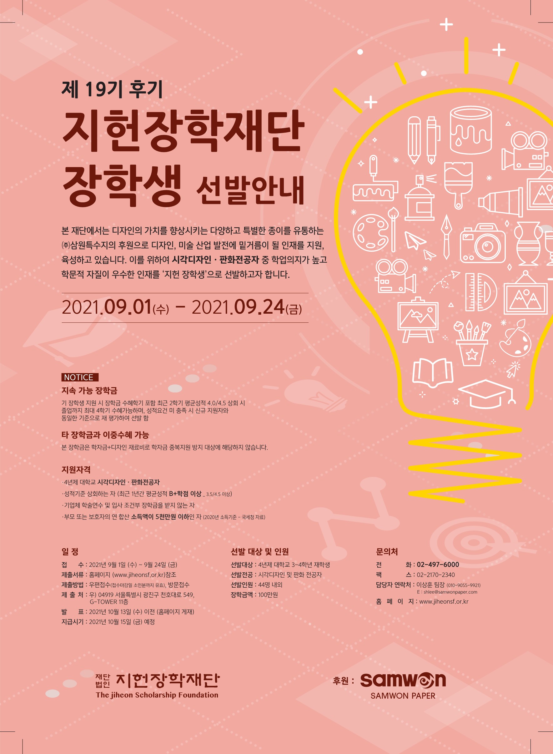 [지헌장학재단] 2021-2학기 제 19기 장학생 선발 안내