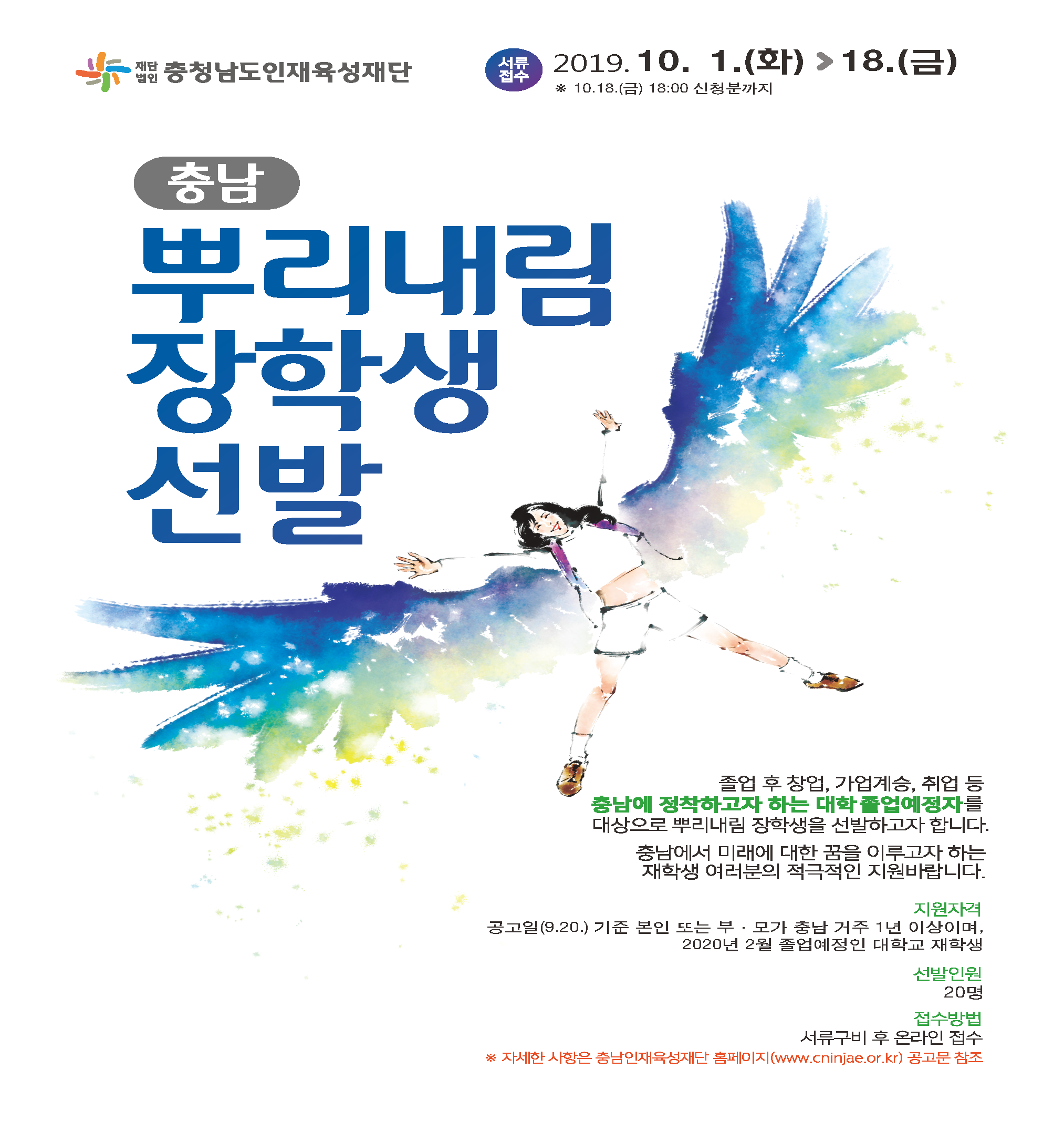 2019-2학기 충청남도인재육성장학재단 충남뿌리내림 장학생 선발 안내