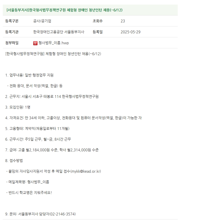 붙임6. [한국형사법무정책연구원]체험형 장애인 청년인턴 채용(~6.12.).jpg