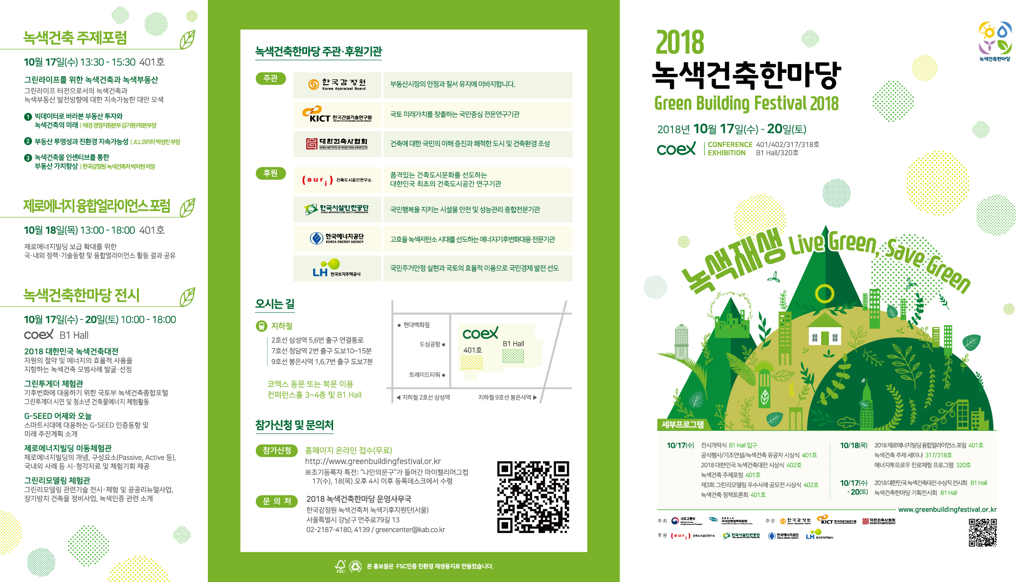 녹색건축에 대한 공감대 확산과 녹색건축산업 활성화를 위하여 국토교통부와 국가건축정책위원회가 공동으로 주최하는 "2018 녹색건축한마당" 행사를 아래와 같이 안내하오니 학생들의 많은 참여 바랍니다.