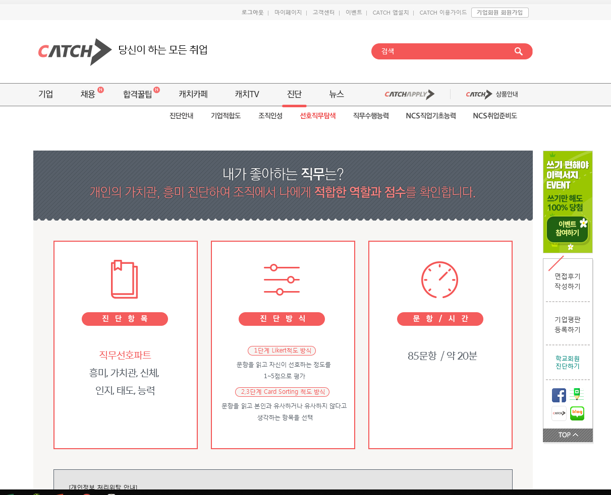 MOKWON UNIVERSITY검사방법: http://univ.catch.co.kr/ >> 회원가입(무료) >> 학교회원 진단하기 >> 목원대학교 선택 후 "다음" 클릭 >> 무료진단(진단하고자하는 항목 선택 후 아래의 대학인증번호(17@mwu92!) 입력 >> 검사시작~ 문의 : 취업지원과 7155, 7152 - 취업지원과 - 검사절차안내 1. http://univ.catch.co.kr/ >> 회원가입 2. CATCH 홈페이지 왼쪽 중간에 학교회원 진단하기 클릭 3. 목원대학교를 선택한 후 다음을 클릭 4. 무료진단에서 내림버튼을 클릭하여 진단선택을 한다. 5. 대학인증번호(17@mwu92!) 입력후 다음 클릭하여 검사를 시작한다. |