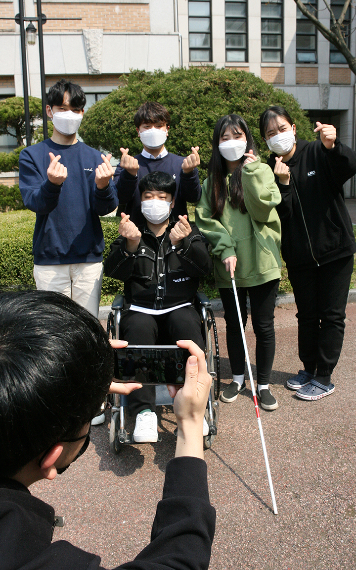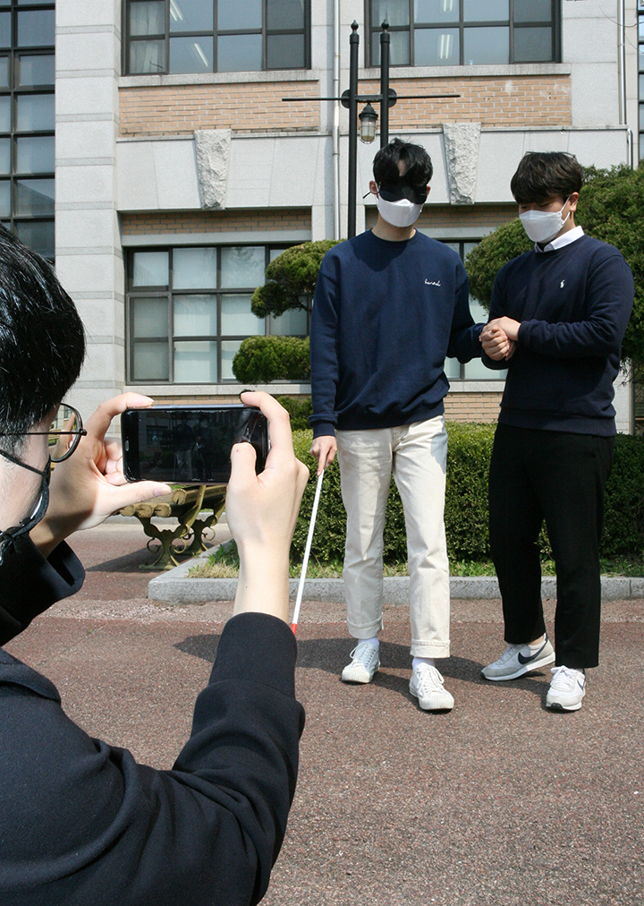 MOKWON UNIVERSITY장애인식 개선 UCC 홍보영상을 찰영하는 사회복지학과 학생들 사회복지학과, 온라인 장애인식 개선 활동 전개