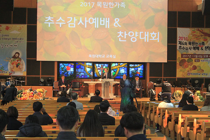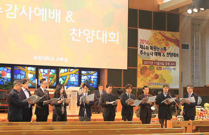 우리 대학(총장 박노권) 교목실은 6일 오후 4시 교내 채플에서 교직원과 학생 등 300여명이 참석한 가운데 ‘2017 목원한가족 추수감사예배 및 제4회 찬양대회’를 가졌다.
