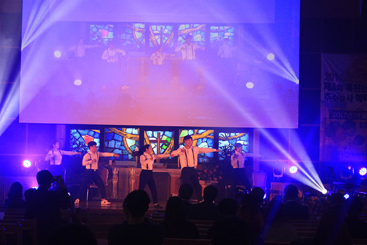 찬양대회에 참가한 팀의 화려한 몸짓으로 청충들을 매료시켰다.