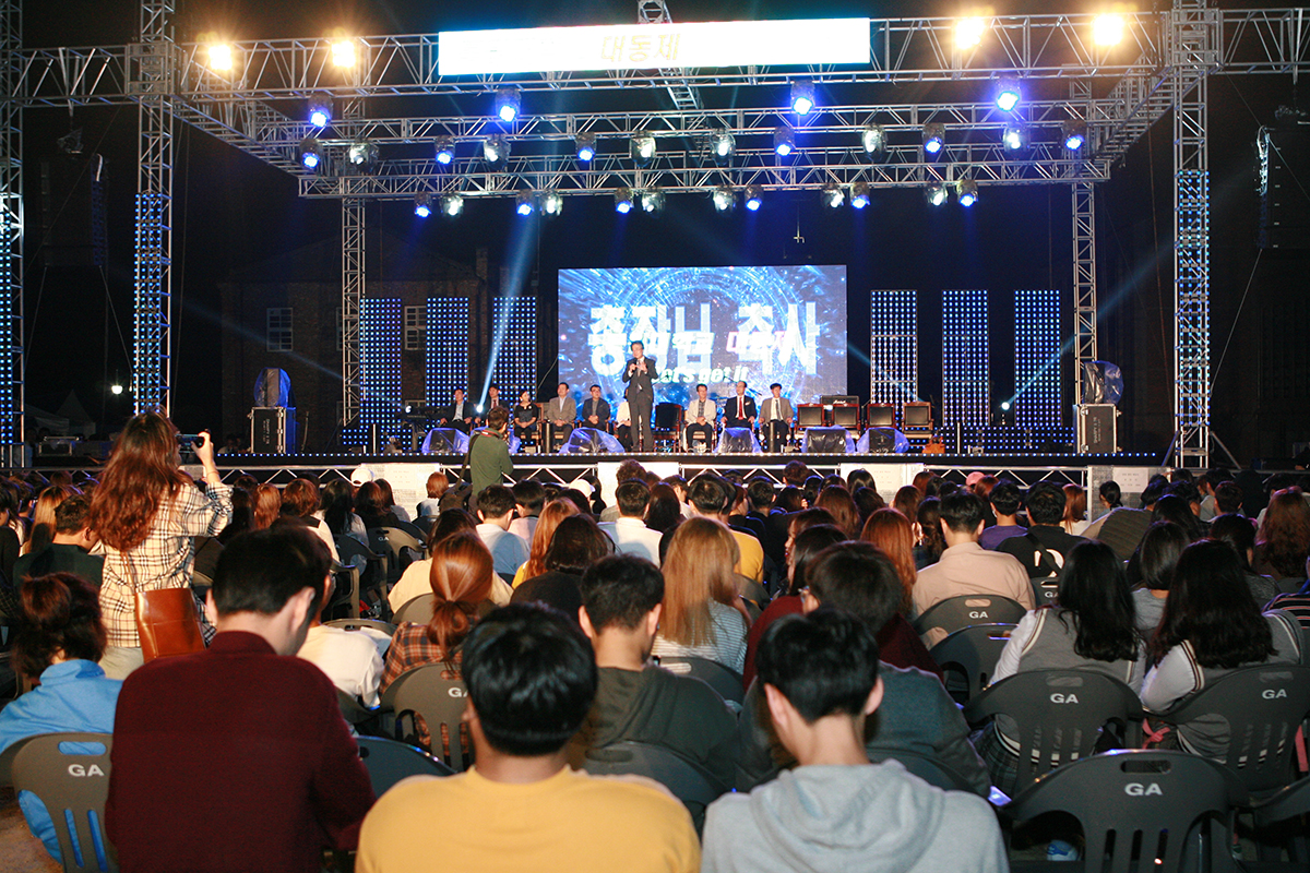 총학생회가 ‘Let’s get it’을 슬로건으로 한 2017년 대동제 개막을 선언하고 있다.