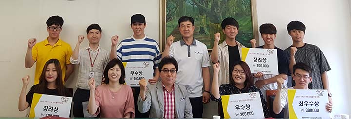 MOKWON UNIVERSITY공학혁신센터가 지난 학기에 실시한 "목원 디딤돌" 시상식에서 수상을 한 멘토링 팀들이 즐거워하고 있다.