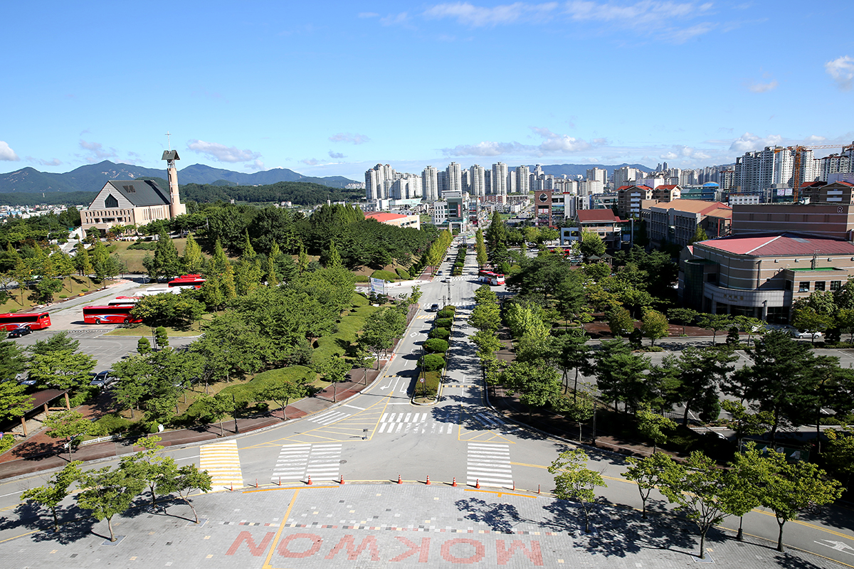 MOKWON UNIVERSITY중앙도서관에서 정문쪽으로 내려다 본 목원대의 여름 캠퍼스 전경