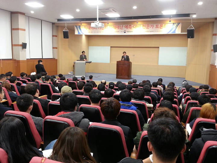 빅데이터 기반 미래재난 예측 전문가 토론회 원자력 사고-산재 등 대형재해 대비 활동방안 제시 우리대학은 2일 오후 2시 건축도시교육지원센터에서 국민안전처가 주최하고 목원대학교가 주관하는 "빅데이터 기반의 미래재난 예측 대비"를 위한 전문가 토론회가 열렸다. 이번 토론회는 사회환경 변화에 따른 재난 사고의 위험이 증대하고 복잡 다양한 재난에 대비하기 위하여 데이터 기반의 강화된 재난관리의 필요성이 대두된데 따른 것이다.