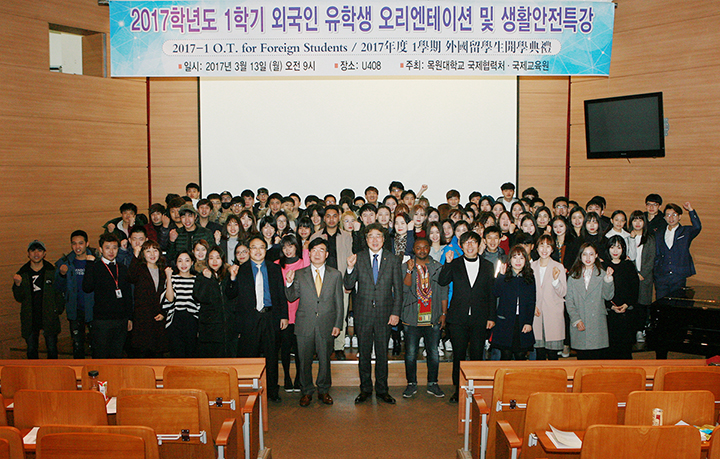 우리 대학은 13일 오전 9시 사범관 407호에서 박노권총장을 비롯 국제협력처 교직원과 외국인 유학생 등 150여명이 참석한 가운데 2017학년도 1학기 외국인 유학생 입학식 및 오리엔테이션, 생활안전특강 프로그램을 잇따라 개최했다.