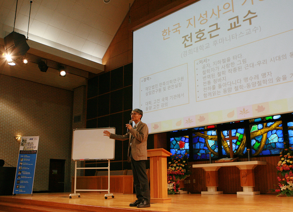 우리 대학 르네상스 교양특강, 고전 학자 전호근 교수 초청 특강 대학 시민이 함께하는 명품 교양강좌 우리 대학은 7일(목) 오후 3시, 교내 채플에서 명품교양강좌 르네상스 교양특강으로 우리 시대 고전 학자 전호근 교수를 초청하여 “한국 지성사의 거장들”이라는 주제의 강연을 연다. 전호근 교수는 강연에서 동아시아 불교사에 빛나는 명저 『대승기신론소』와 『금강삼매경론』을 남긴 화쟁의 철학자 원효, 화엄철학의 정통을 이어 신라의 사상적 기반을 형성한 의상의 삶과 사유를 통해 대립과 갈등을 지양하는 지혜를 찾아볼 것이다. 또한 말과 행실이 일치한 성리학자 이황의 삶과 사유를 통해 도덕과 욕망의 관계를 살펴보고, 정교한 이론으로 조선 성리학을 완성시켰을 뿐 아니라 시의 적절한 경장론으로 민생의 안정을 추구했던 이이의 삶과 사유를 살펴볼 것이다. 전호근 교수는 현재 경희대학교 후마니타스 칼리지 교수이며, 재단법인 민족의학연구원 상임연구원 및 편찬실장을 역임하였다. 저서로 『공자, 지하철을 타다』, 『철학자가 사랑한 그림』, 『번역된 철학 착종된 근대 - 우리 시대의 동아시아 고전 읽기』, 『전통청바지』, 『천하를 돌아다니다 맹수레 맹자』,『함께 읽는 동양철학 - 동양철학의 숲을 거닐다』등이 있다. 르네상스 교양특강 다음 일정으로는 4월 21일 KBS TV “역사저널 그날”로 우리에게 친숙한 건국대학교 신병주 교수가 “조선전기의 정치와 문화 - 세종시대를 중심으로 ”라는 제목으로 강연을 할 예정이다. 5월 12일에는 시인이자 방송작가인 이병률 작가가 “세상의 많은 길들이 대답해 주었다”라는 제목의 강연을, 5월 19일에는 르네상스 봄 음악회로 “한국 음악 가까이서 보기”라는 제목으로 연정 국악원 김병곤 교수가 이끄는 새 울림 예술단 초청 공연이 준비되어 있다. 목원대학교 르네상스 교양특강 이번 학기 마지막 강연은 6월 2일 한국예술종합학교 영상원의 심광현 교수가 “예술과 인지과학”이라는 주제로 강연을 할 예정이다. 한편, 명품교양강좌 르네상스 교양특강은 목원대학교 학생 이외에도 시민을 위해서도 문을 활짝 열어놓고 있다. 이 시대의 교양과 문화를 함께 느끼고 싶은 시민들은 격주 목요일 오후 3시 목원대학교 채플에서 그 깊이와 감동을 함께 할 수 있다. 특히, 참여하는 모든 시민에게는 예쁜 에코백이 증정될 예정이다.