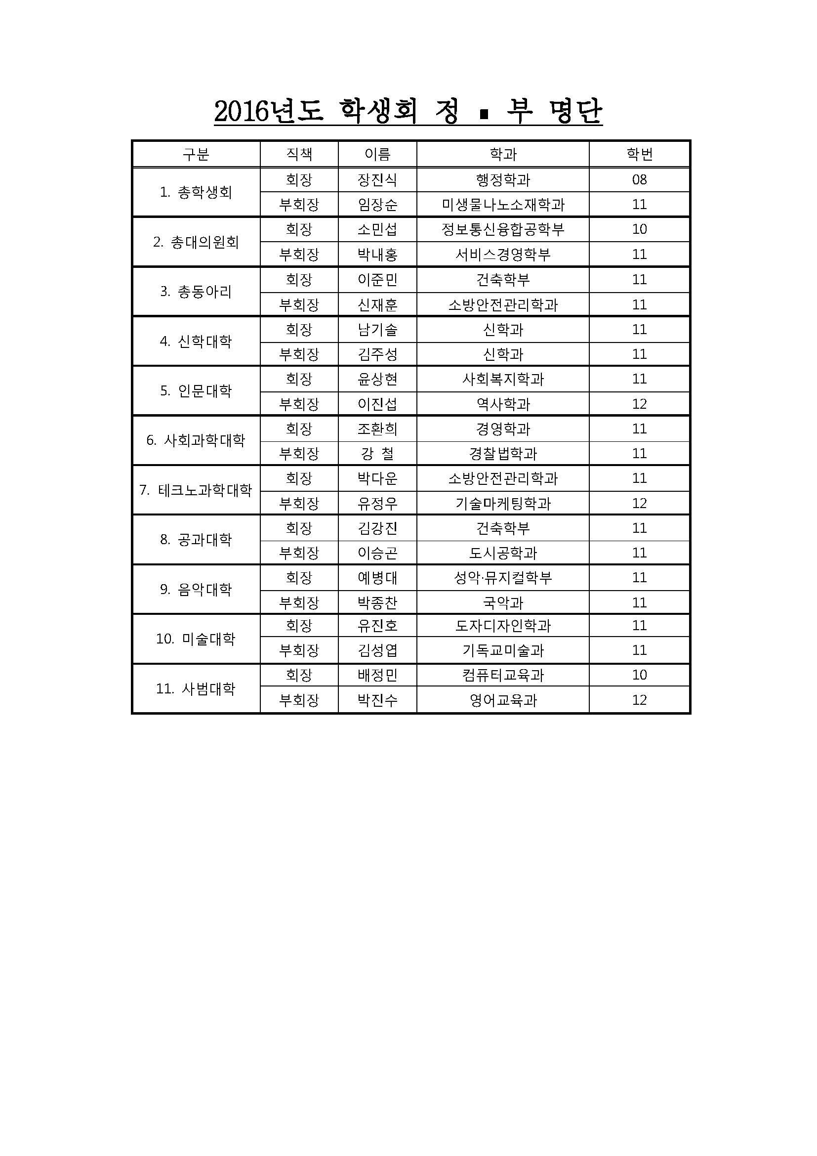 2016학년도 제36대 총학생회 임명식 및 2015학년도 학생회 상임위원회 간담회